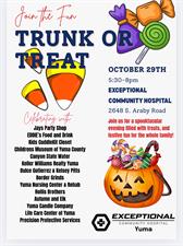 Free Community Event! Trunk or Treat in the hospital parking lot. Activities for the entire family! Costumes welcomed. Numerous community partners joining the fun!